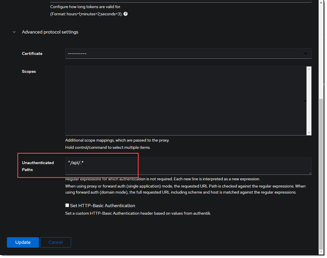 Optionally, add the regular expression to allow api calls in the advanced protocol settings.