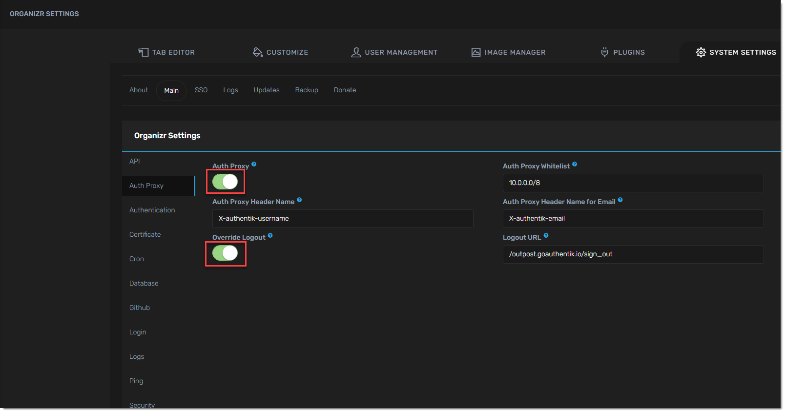- Enable Auth Proxy in organizr system settings -> main -> Auth Proxy